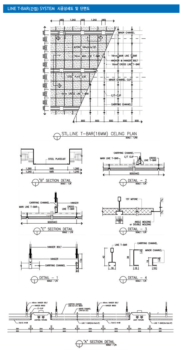 ① 시스템 : LINE T-BAR SYSTEM(간접 현수 공법 )